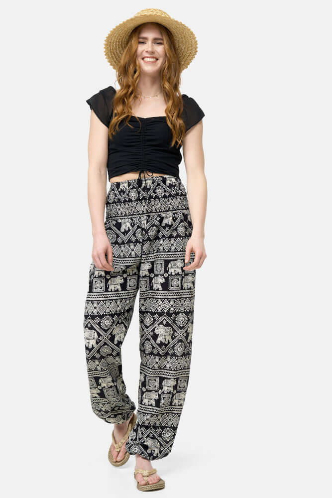 The paigh harem pants are the perfect companion for all situations. Whether during yoga, on the beach, in the park or at home on the sofa. The soft and light viscose fabric makes the pants incredibly comfortable and hardly noticeable on the skin. The wide and very elastic waistband ensures that the pants fit around your hips without pressure but with plenty of support and adapt to your body. Exciting colors and patterns add the icing on the cake to the great wearing comfort and make your world a little more colorful every day.