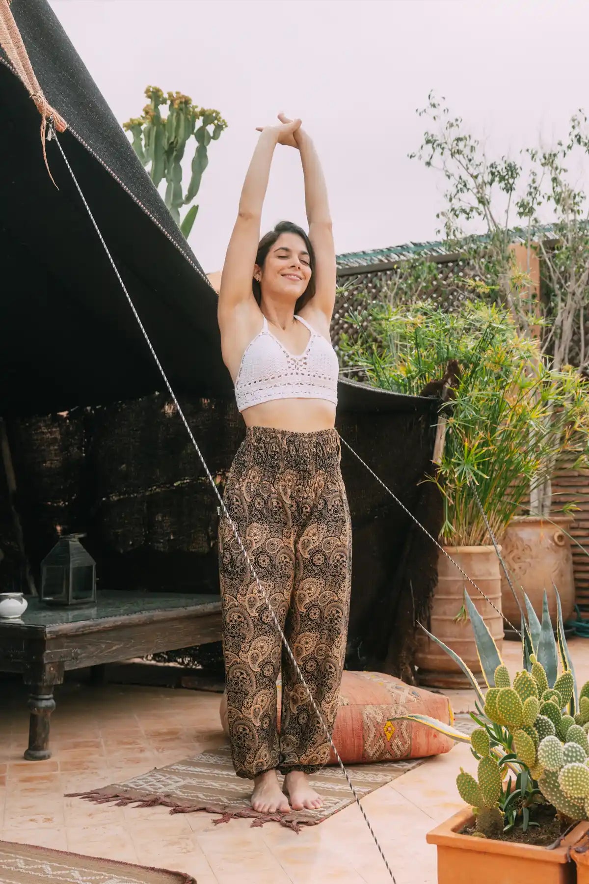 Pantalones bombachos cálidos para estar por casa flores silvestres