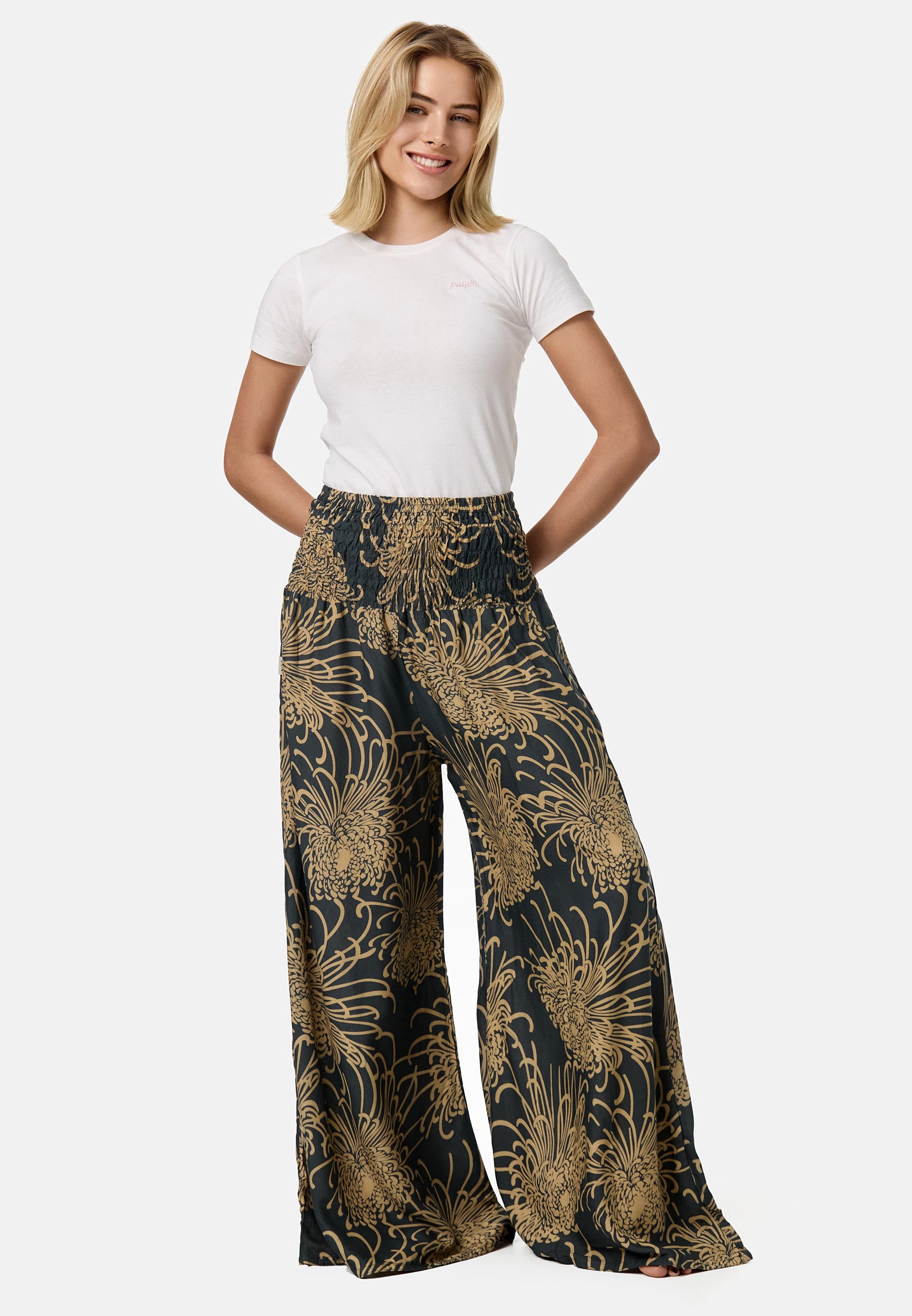 Per tutti coloro che vorrebbero che le loro gambe fossero ancora più morbide e ariose, sono ora disponibili i nostri nuovi pantaloni harem Palazzo. I pantaloni Palazzo, conosciuti anche come pantaloni Marlene, hanno la stessa ampia cintura dei nostri classici pantaloni harem e garantiscono quindi il comfort popolare e confortevole. La gamba ha un taglio extra largo e non ha elastico in vita alla caviglia, il che significa che i pantaloni sono super larghi, larghi e incarnano la massima libertà e comfort. Perfetto per le calde giornate estive a casa o in vacanza per rilassarsi!