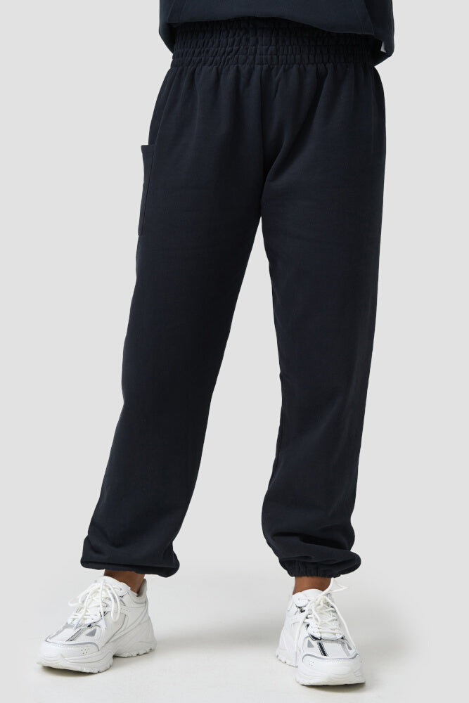 Der elastische Bund und die sanften Bündchen an den Knöcheln sorgen für bequemen Halt, ohne einzuengen. Eine aufgenähte Tasche bietet Platz für kleine Dinge, die du immer bei dir haben möchtest. So bleibt deine Hose genauso flexibel wie du.