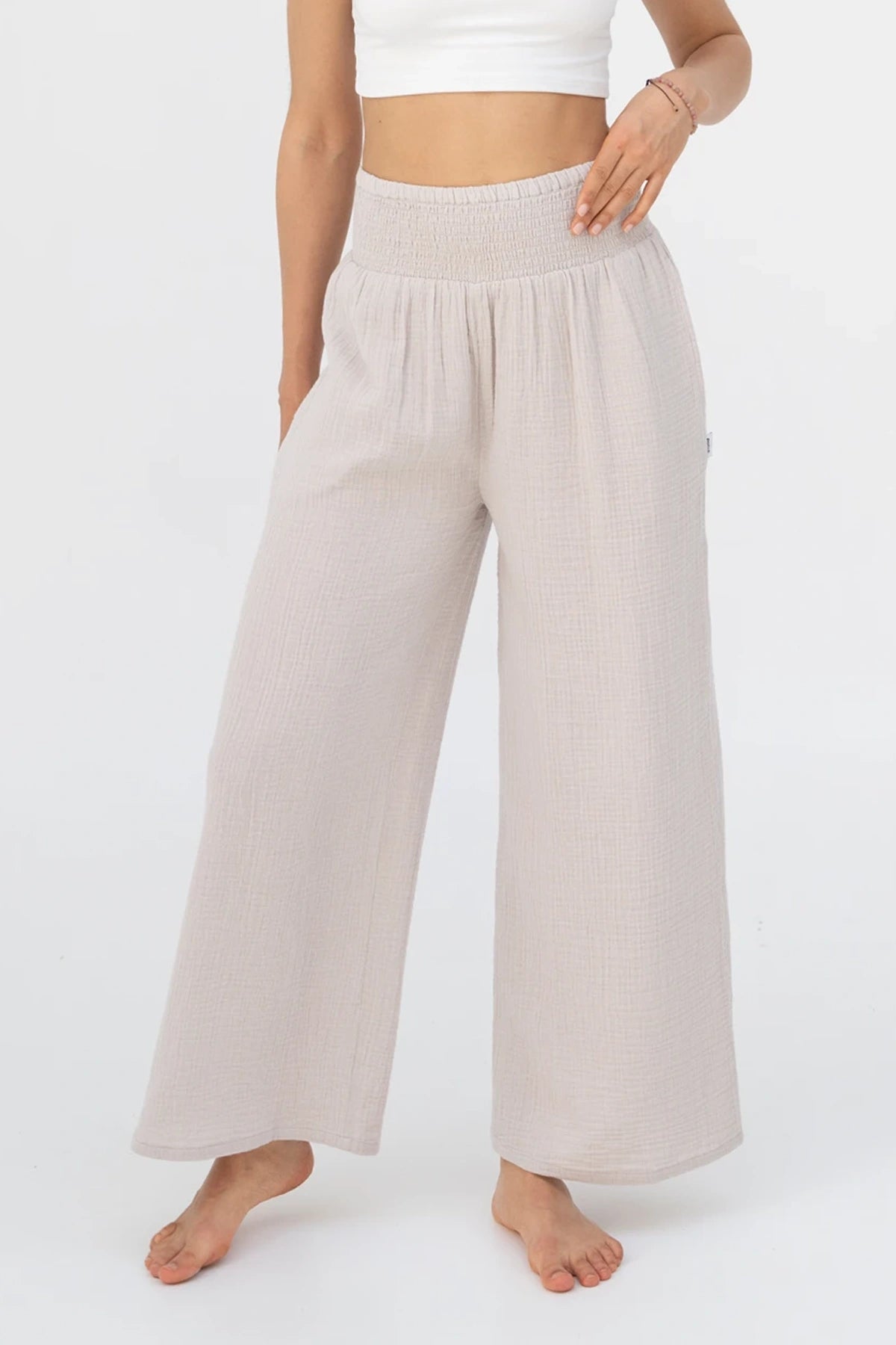 Manchmal ist es ganz einfach: eine Hose, die sich rundum gut anfühlt. Die Musselin Palazzohose bringt Leichtigkeit in deinen Alltag – mit einem weiten, fließenden Schnitt und einem besonders weichen Stoff aus 100 % Bio-Baumwolle. Der hohe, elastische Bund sitzt sanft in der Taille, ohne einzuengen, und schenkt dir ein Gefühl von Freiheit und Komfort.