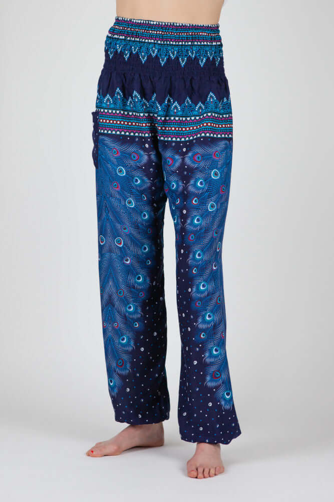 Calça Harem Azul Olho de Pavão Versão Longa