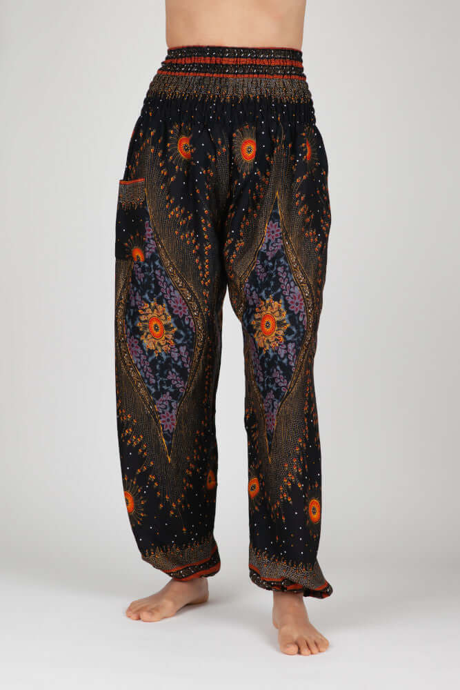 As calças harem paigh são a companhia perfeita para todas as situações. Seja no ioga, na praia, no parque ou em casa, no sofá. O tecido de viscose macio e leve torna as calças incrivelmente confortáveis e quase impercetíveis em contacto com a pele. O cós largo e altamente elástico garante que as calças se ajustam às ancas sem pressão, mas com bastante apoio, adaptando-se ao seu corpo. Cores e padrões vibrantes dão o toque final ao conforto, tornando o seu mundo um pouco mais colorido a cada dia.