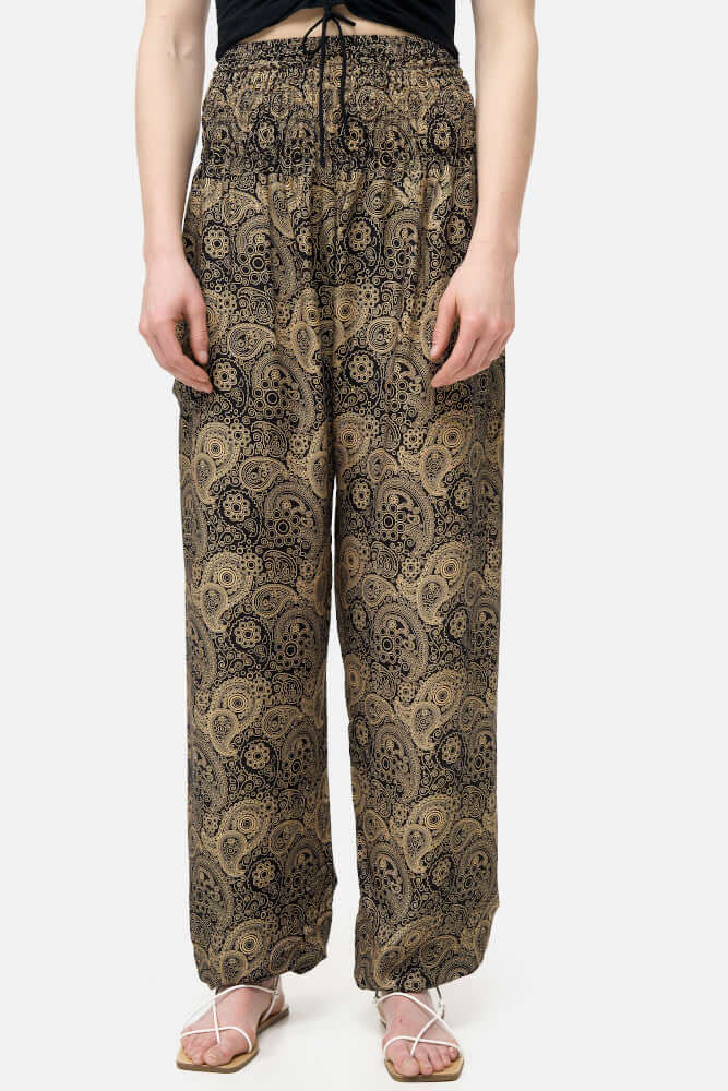 Calça Harem Ornamentos Dourados Versão Longa
