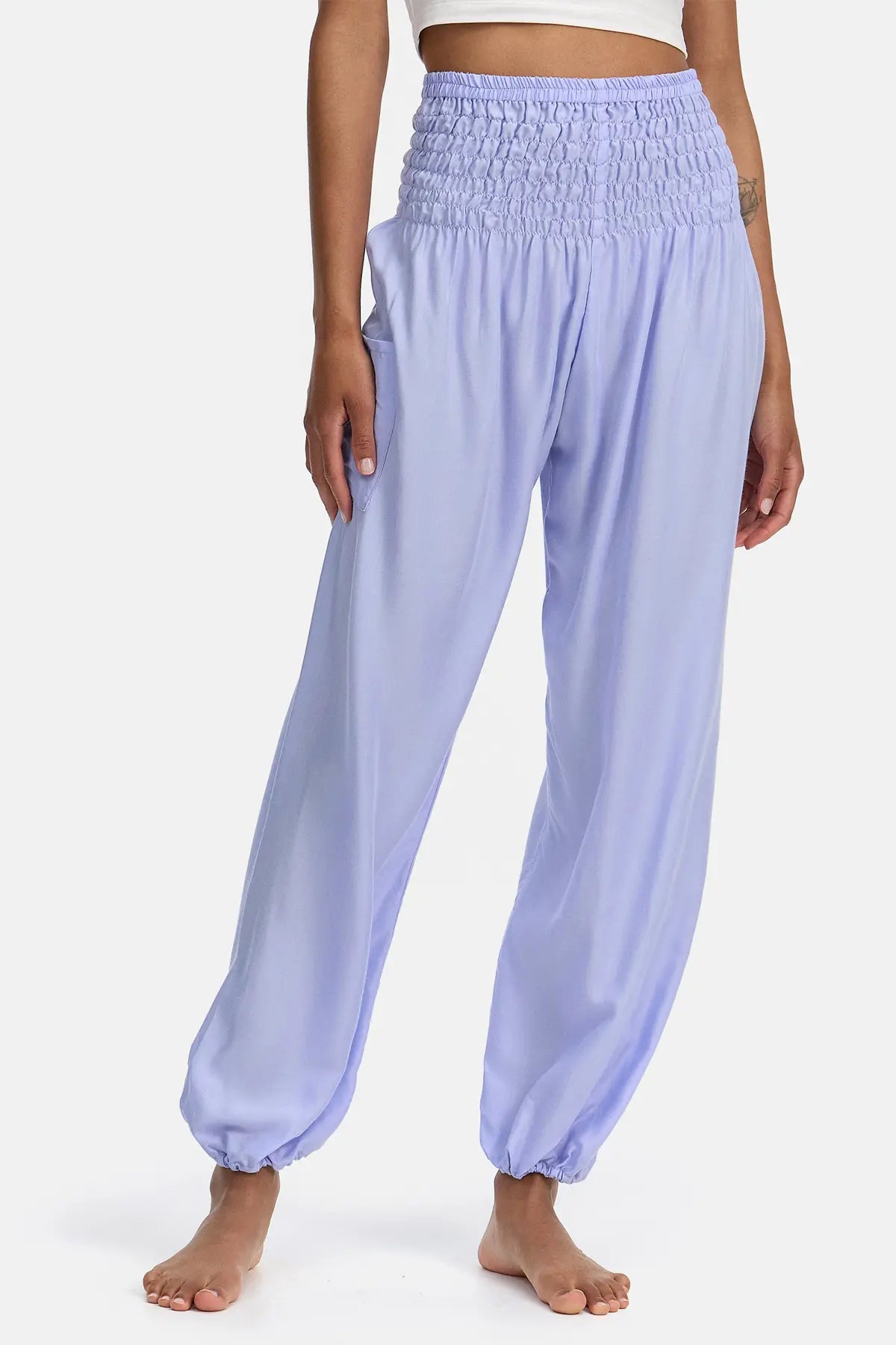 As calças harem paigh são a companhia perfeita para todas as situações. Seja no ioga, na praia, no parque ou em casa, no sofá. O tecido de viscose macio e leve torna as calças incrivelmente confortáveis e quase impercetíveis em contacto com a pele. O cós largo e altamente elástico garante que as calças se ajustam às ancas sem pressão, mas com bastante apoio, adaptando-se ao seu corpo. Cores e padrões vibrantes dão o toque final ao conforto, tornando o seu mundo um pouco mais colorido a cada dia.