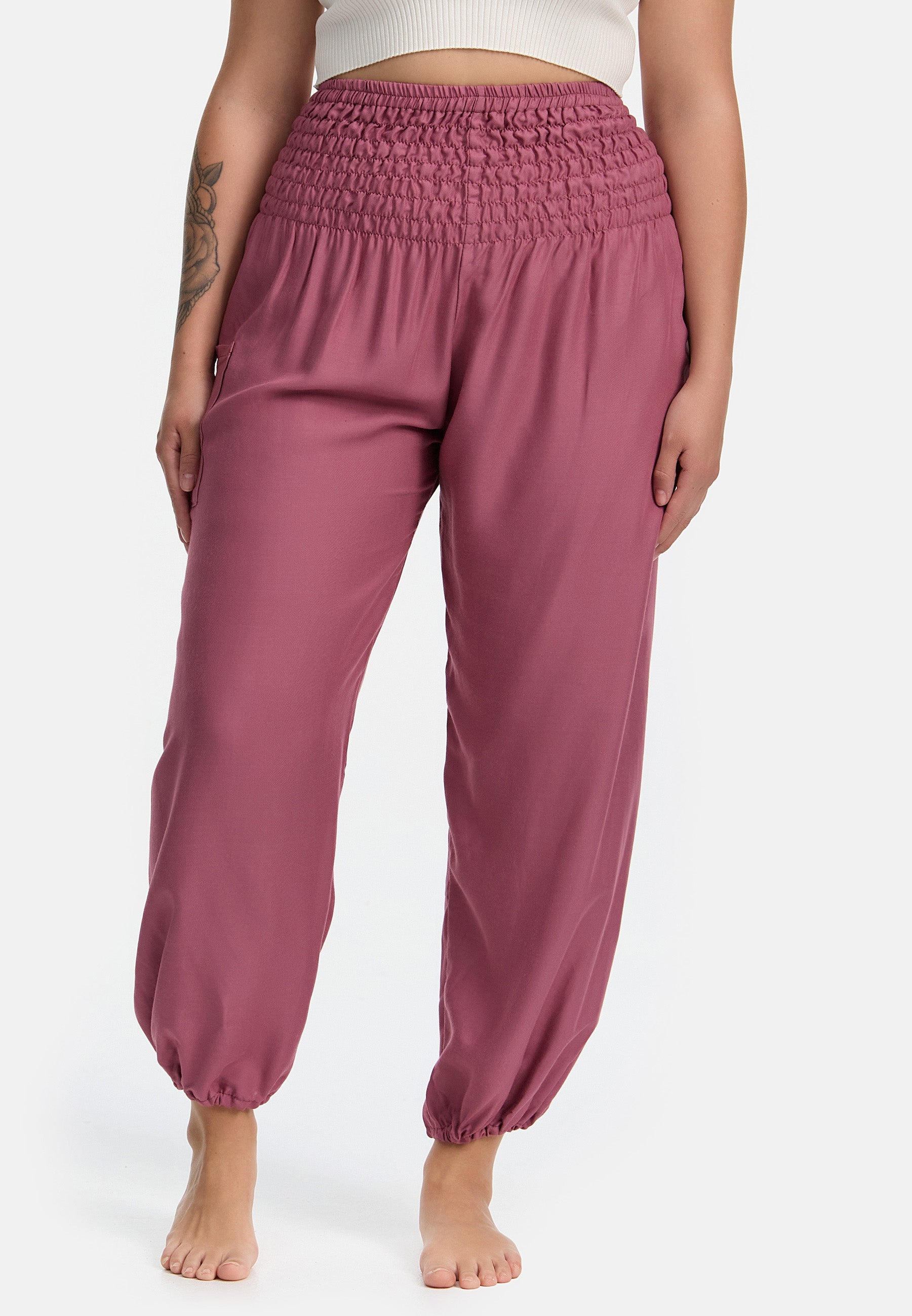 As calças harem paigh são a companhia perfeita para todas as situações. Seja no ioga, na praia, no parque ou em casa, no sofá. O tecido de viscose macio e leve torna as calças incrivelmente confortáveis e quase impercetíveis em contacto com a pele. O cós largo e altamente elástico garante que as calças se ajustam às ancas sem pressão, mas com bastante apoio, adaptando-se ao seu corpo. Cores e padrões vibrantes dão o toque final ao conforto, tornando o seu mundo um pouco mais colorido a cada dia.