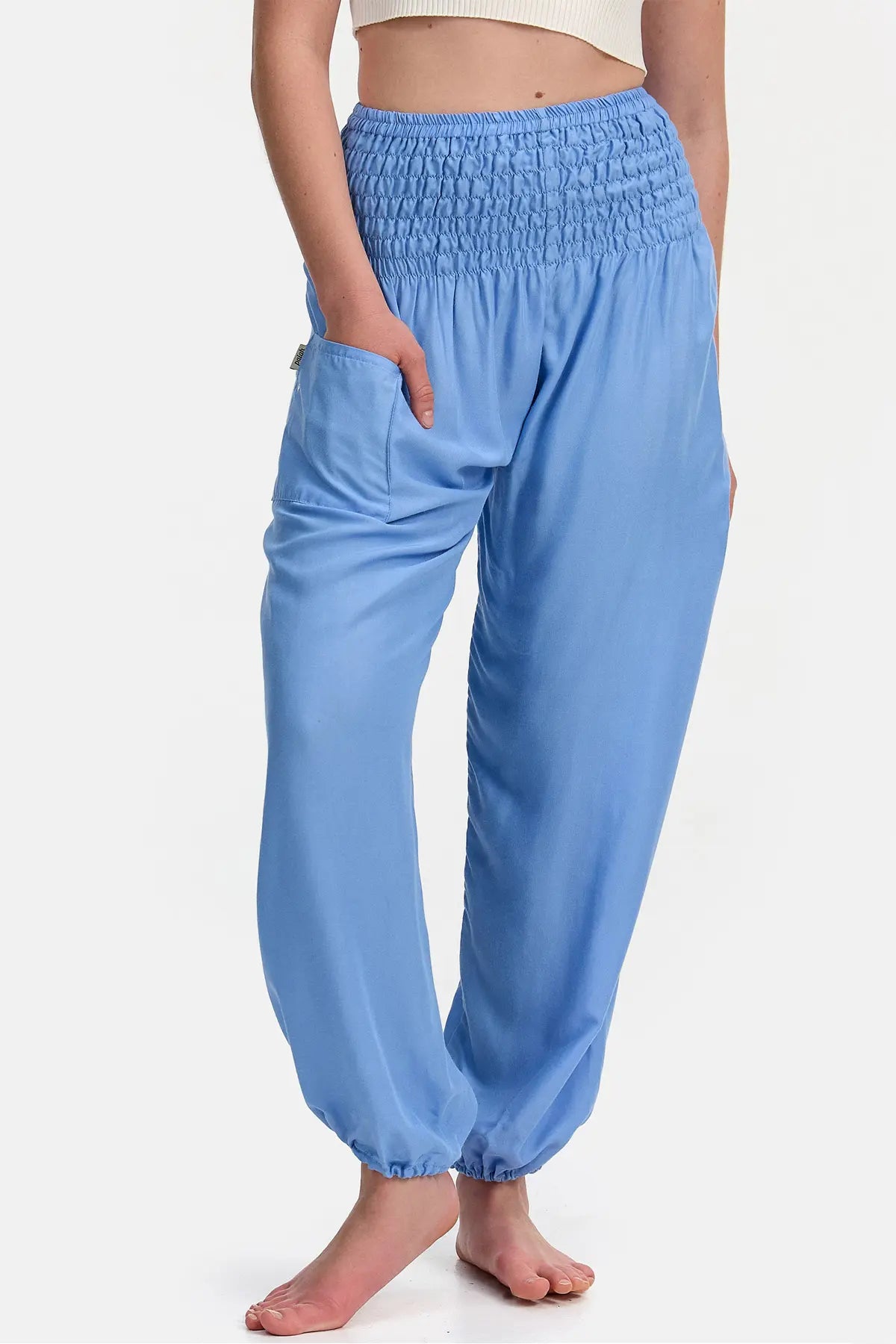 As calças harem paigh são a companhia perfeita para todas as situações. Seja no ioga, na praia, no parque ou em casa, no sofá. O tecido de viscose macio e leve torna as calças incrivelmente confortáveis e quase impercetíveis em contacto com a pele. O cós largo e altamente elástico garante que as calças se ajustam às ancas sem pressão, mas com bastante apoio, adaptando-se ao seu corpo. Cores e padrões vibrantes dão o toque final ao conforto, tornando o seu mundo um pouco mais colorido a cada dia.