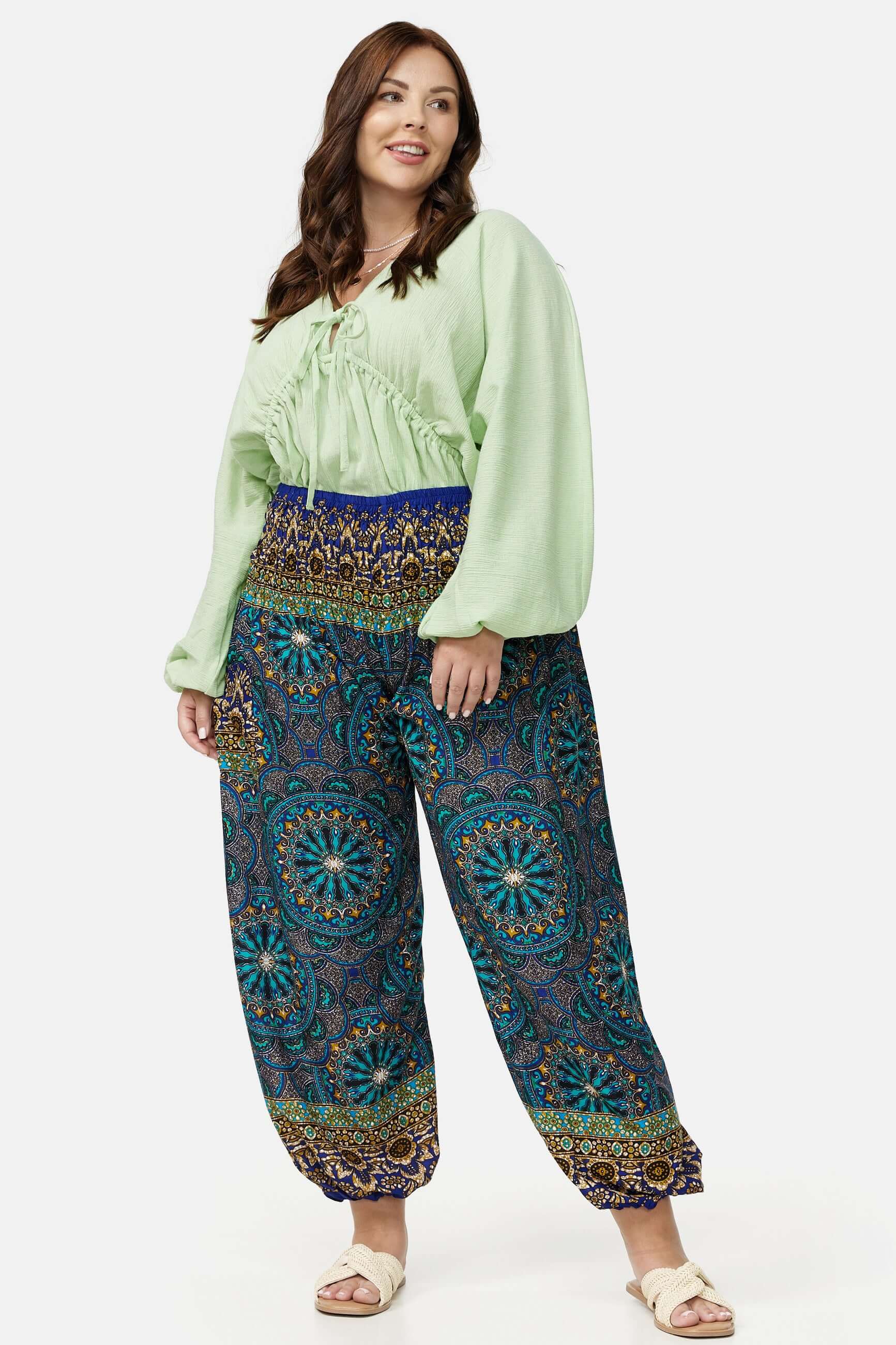As calças harem paigh são a companhia perfeita para todas as situações. Seja no ioga, na praia, no parque ou em casa, no sofá. O tecido de viscose macio e leve torna as calças incrivelmente confortáveis e quase impercetíveis em contacto com a pele. O cós largo e altamente elástico garante que as calças se ajustam às ancas sem pressão, mas com bastante apoio, adaptando-se ao seu corpo. Cores e padrões vibrantes dão o toque final ao conforto, tornando o seu mundo um pouco mais colorido a cada dia.