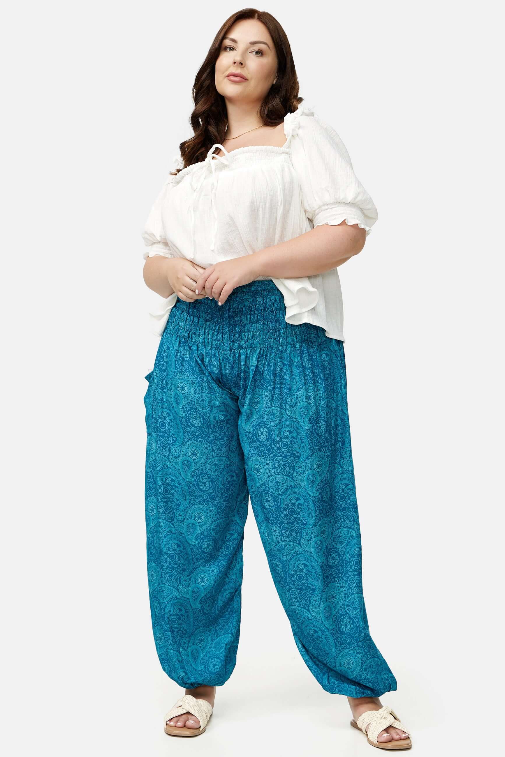 As calças harem paigh são a companhia perfeita para todas as situações. Seja no ioga, na praia, no parque ou em casa, no sofá. O tecido de viscose macio e leve torna as calças incrivelmente confortáveis e quase impercetíveis em contacto com a pele. O cós largo e altamente elástico garante que as calças se ajustam às ancas sem pressão, mas com bastante apoio, adaptando-se ao seu corpo. Cores e padrões vibrantes dão o toque final ao conforto, tornando o seu mundo um pouco mais colorido a cada dia.