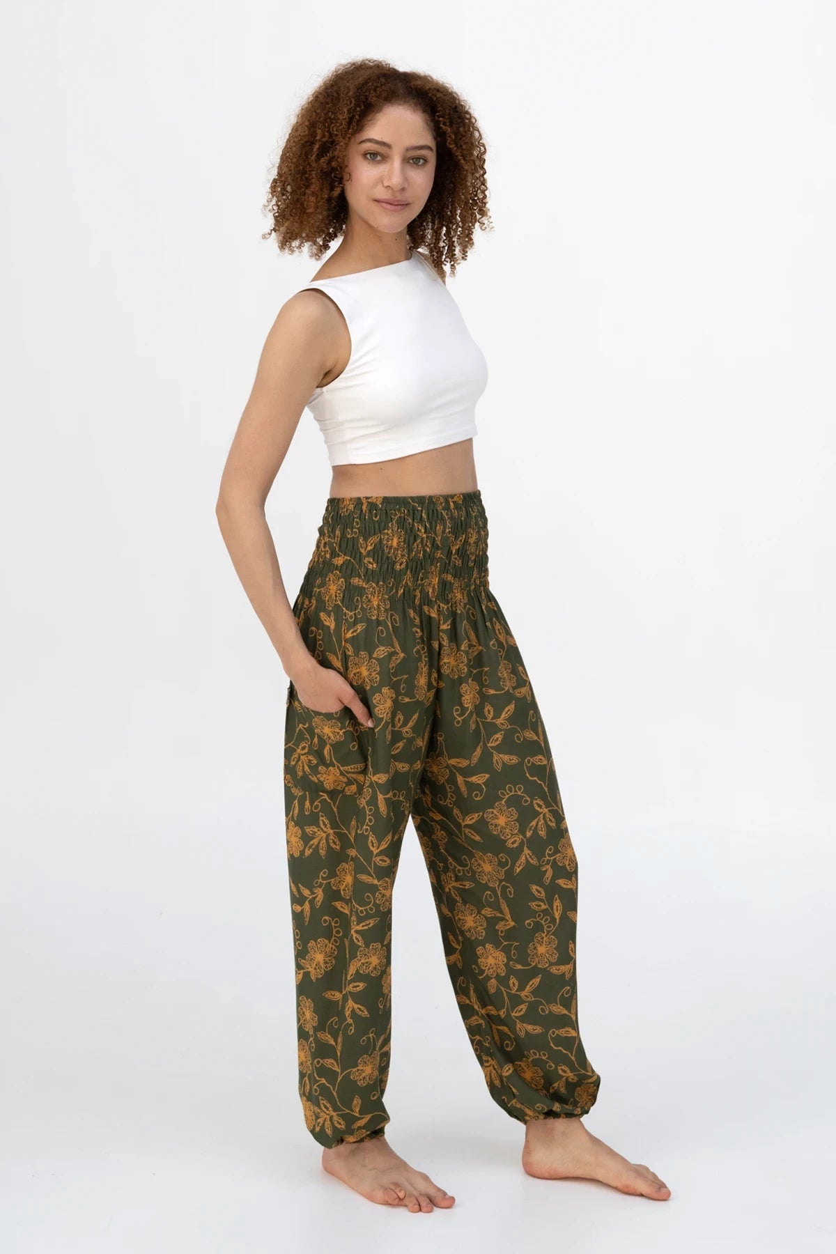 As calças harem paigh são a companhia perfeita para todas as situações. Seja no ioga, na praia, no parque ou em casa, no sofá. O tecido de viscose macio e leve torna as calças incrivelmente confortáveis e quase impercetíveis em contacto com a pele. O cós largo e altamente elástico garante que as calças se ajustam às ancas sem pressão, mas com bastante apoio, adaptando-se ao seu corpo. Cores e padrões vibrantes dão o toque final ao conforto, tornando o seu mundo um pouco mais colorido a cada dia.