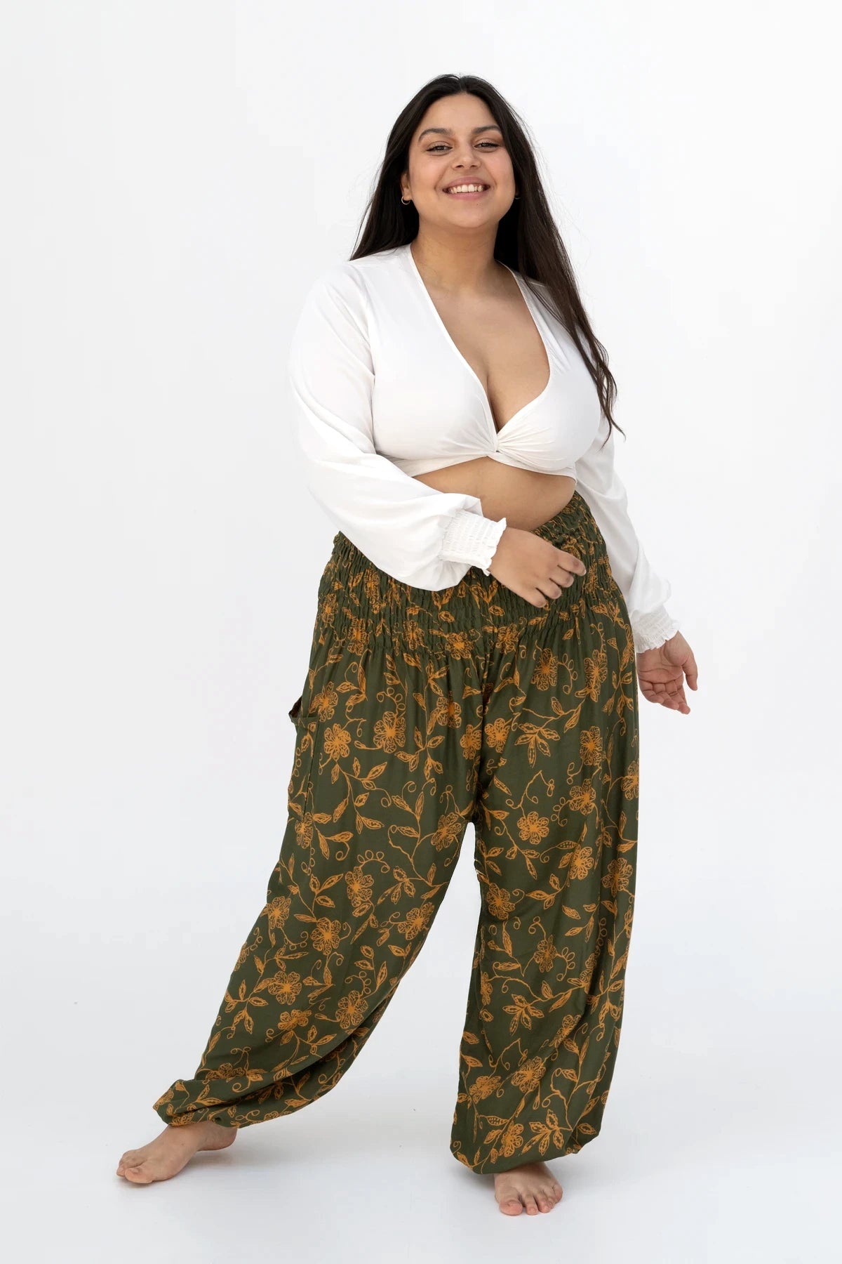 Calça Harem Verde Oliva Flor Silvestre Plus Size