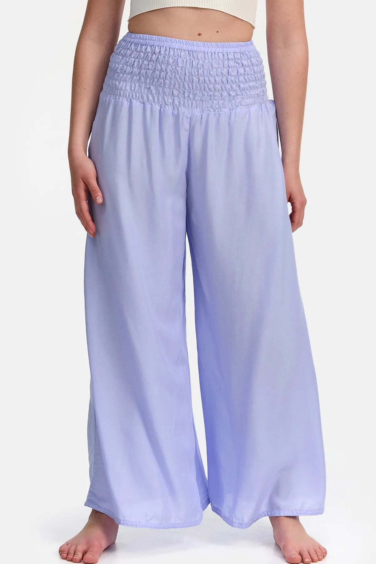 Para quem prefere um corte mais solto e arejado nas pernas, disponibilizamos agora a nova Calça Harém Palazzo. Esta Calça Palazzo, também conhecida como Calça Marlene, apresenta o mesmo cós largo das nossas clássicas calças de harém, proporcionando a popular e confortável sensação de calças compridas. A perna é extra larga e não tem elástico no tornozelo, o que confere às calças um corte super largo e solto, incorporando o máximo de liberdade e conforto. Perfeita para os dias quentes de verão em casa ou nas férias para relaxar!