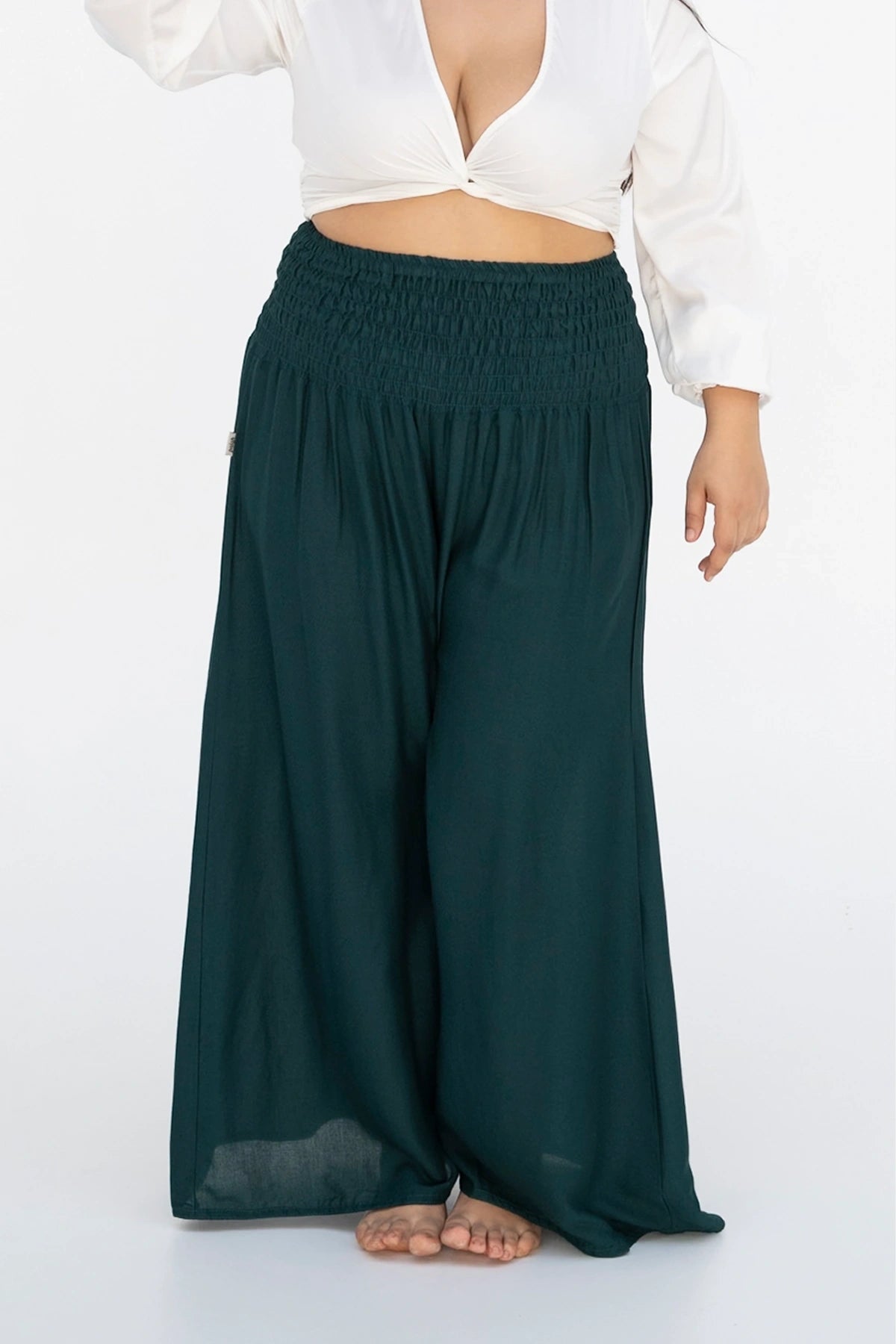 Para quem prefere um corte mais solto e arejado nas pernas, disponibilizamos agora a nova Calça Harém Palazzo. Esta Calça Palazzo, também conhecida como Calça Marlene, apresenta o mesmo cós largo das nossas clássicas calças de harém, proporcionando a popular e confortável sensação de calças compridas. A perna é extra larga e não tem elástico no tornozelo, o que confere às calças um corte super largo e solto, incorporando o máximo de liberdade e conforto. Perfeita para os dias quentes de verão em casa ou nas férias para relaxar!