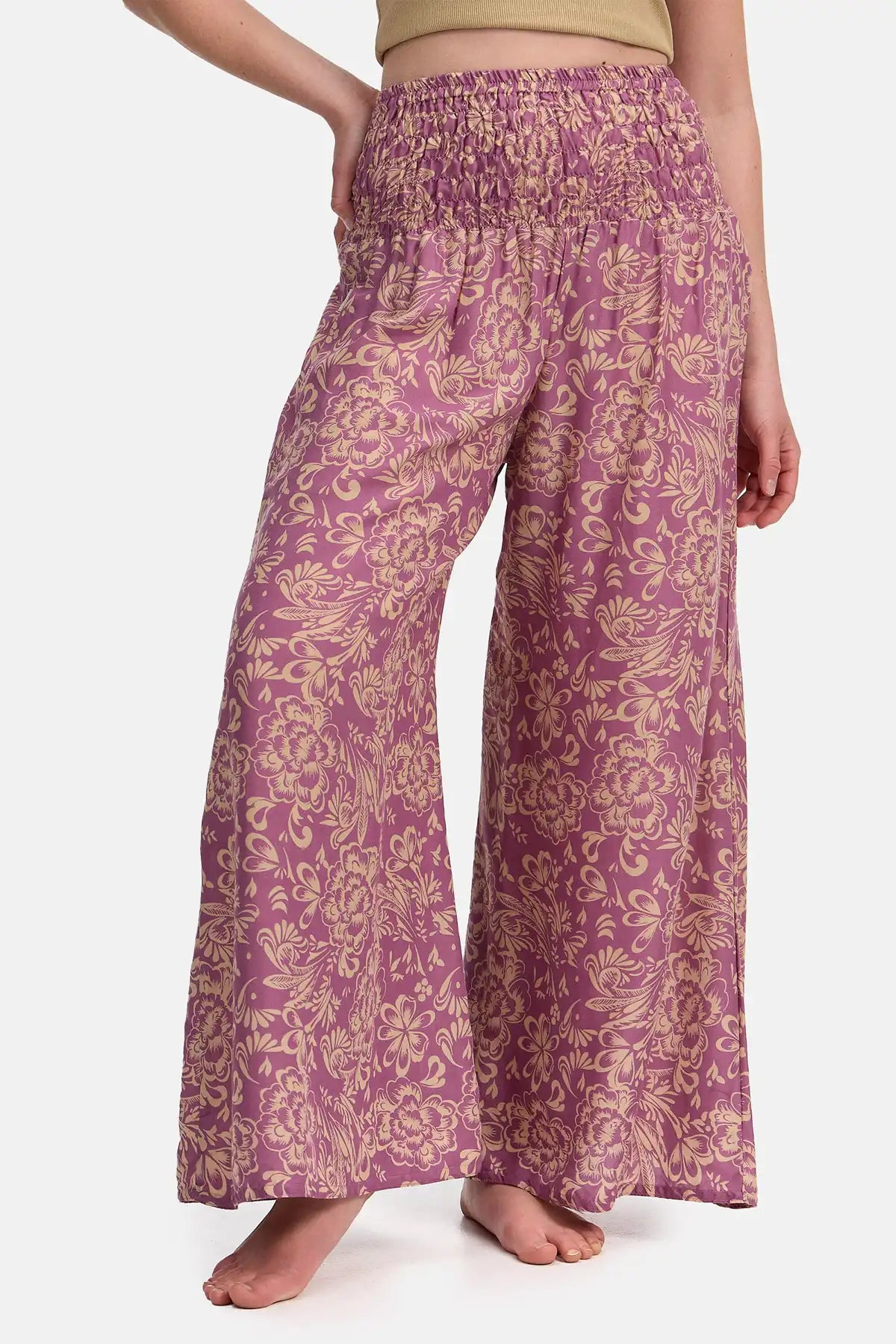 Zwei lachende Frauen stehen in bunten Haremshosen vor einem Pool