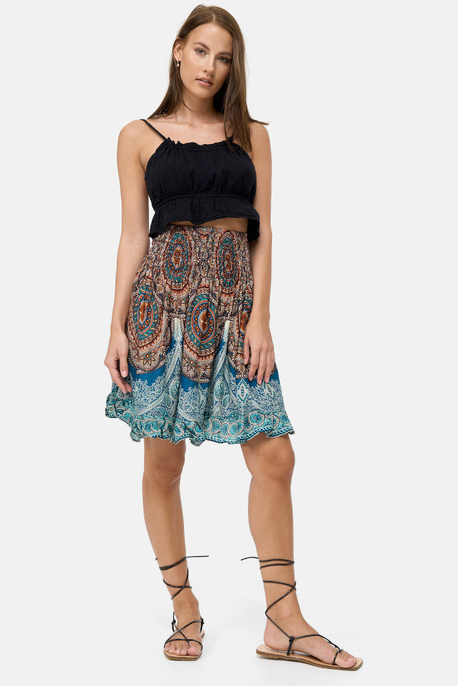Para estarmos prontas para o verão, temos uma nova saia na família que complementa na perfeição a nossa coleção de verão. Esta saia curta tem um cós largo e muito elástico, permitindo que seja usada tanto à altura da anca como um pouco mais abaixo. A saia é rematada com "asas" subtis que acrescentam um toque de largura e soltura ao corte. Sejam dias quentes na cidade ou dias relaxantes de férias, a saia leve Paigh combina sempre com o seu bom humor e alegra o seu dia.